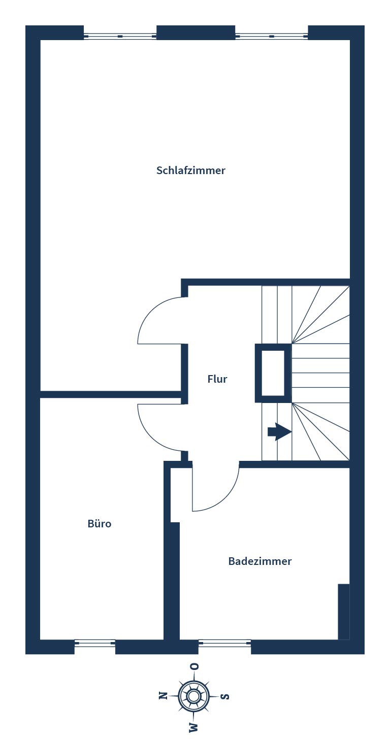Das Obergeschoss überzeugt durch freundliche Räume mit bodentiefen Fenstern in jedem Zimmer. Sie erwartet ein großzügiges Schlafzimmer mit herrlichem Blick ins Grüne. Ein weiteres Zimmer – ideal als Gäste- oder Arbeitszimmer – sowie das moderne Tageslichtbad mit ebenerdiger Regendusche, Handtuchheizkörper und geschmackvoller Wandgestaltung vervollständigen diese Etage. Ein integrierter Wäscheschacht sorgt für zusätzlichen Komfort im Alltag.