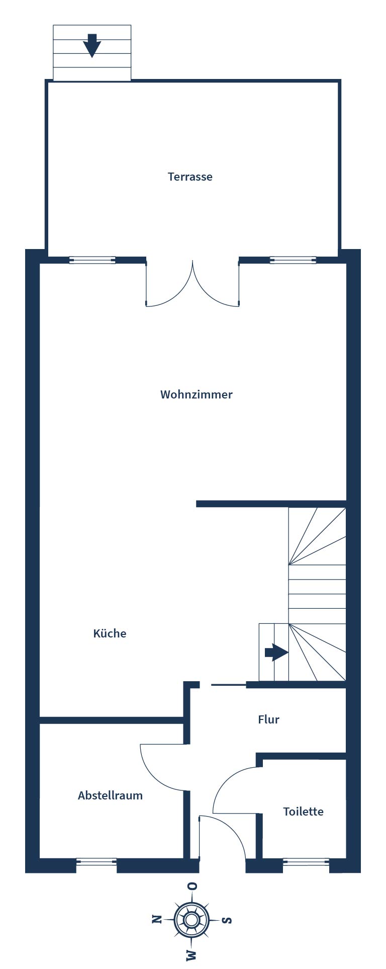 Das Herzstück des Hauses bildet der großzügige Wohn- und Essbereich mit offener Küche. Die hochwertig ausgestattete Einbauküche mit Kochinsel im charmanten „Coffee-Shop“-Design bietet viel Stauraum und wird zum Treffpunkt für die ganze Familie. Vom Wohnbereich aus gelangen Sie direkt auf die Terrasse – Innen- und Außenleben gehen hier nahtlos ineinander über. Ein Gäste-WC sowie ein praktischer Hauswirtschaftsraum komplettieren das Raumangebot im Erdgeschoss.