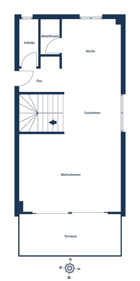 Auf circa 104 Quadratmetern Wohnfläche entfaltet sich ein durchdachter Grundriss über zwei Ebenen. Sie betreten die Wohnung und gelangen in einen hellen Flur, von dem aus Gäste-WC und ein praktischer Abstellraum erreichbar sind. Direkt anschließend öffnet sich der großzügige Wohn- und Essbereich, der durch seine offene Gestaltung sofort ein Gefühl von Weite vermittelt.