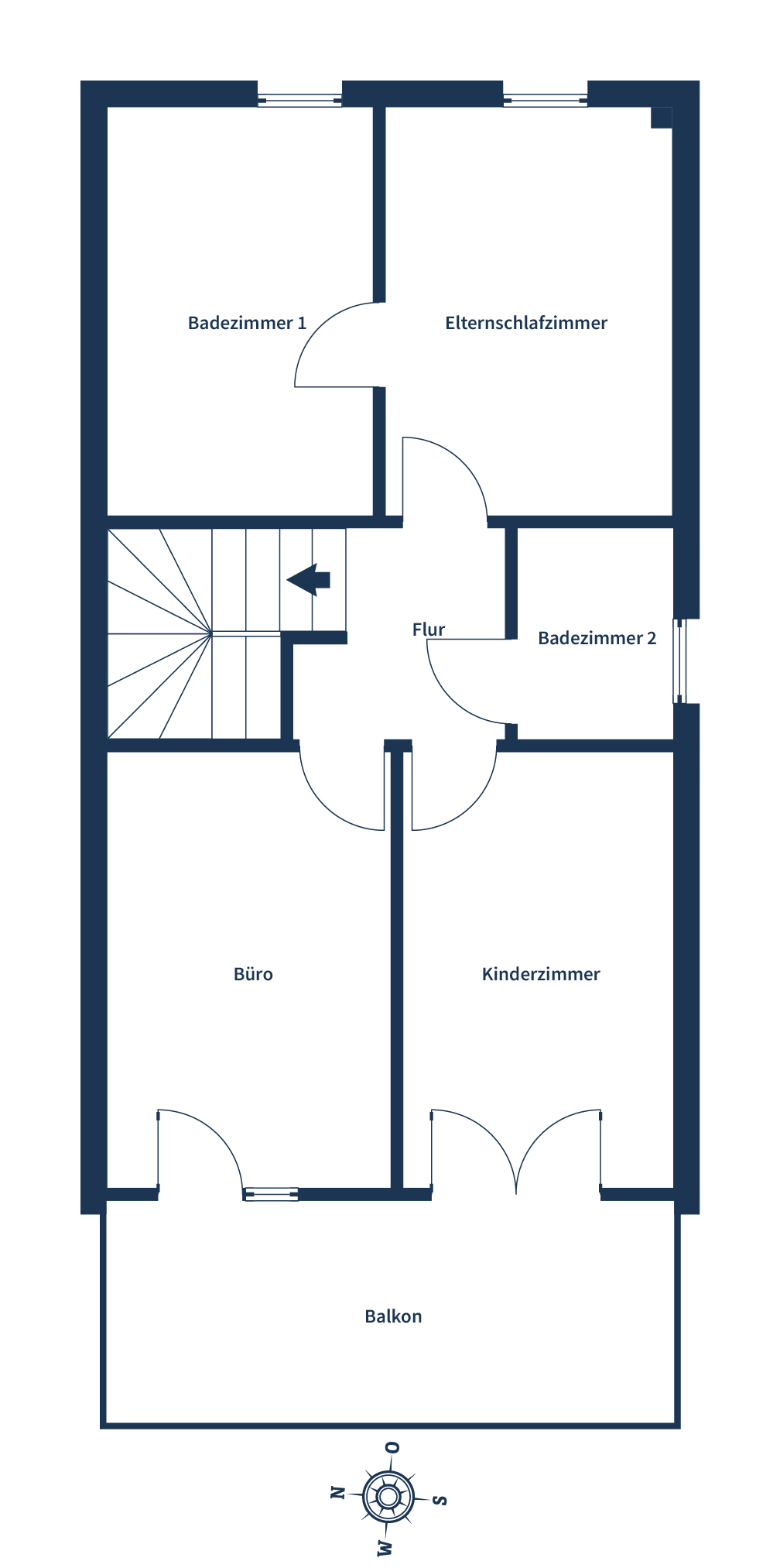 Über die Treppe erreichen Sie die obere Wohnebene: Hier erwarten Sie ein Elternschlafzimmer, ein Kinderzimmer sowie ein weiteres Zimmer, das sich ideal als Büro oder Gästezimmer nutzen lässt. Damit bietet die Wohnung ausreichend Platz für Familie, Homeoffice oder individuelle Wohnideen.