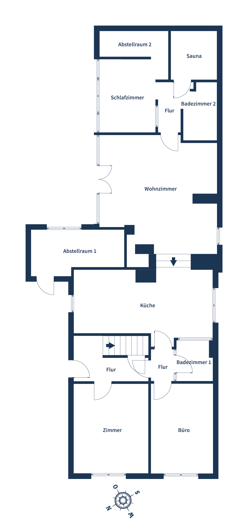 Das Erdgeschoss bietet zudem ein Schlafzimmer, das durch einen angrenzenden Abstellraum optimal als Ankleidebereich genutzt werden kann, eine Sauna sowie ein kleines Badezimmer. Für Gäste oder als Homeoffice stehen Ihnen weitere Räume zur Verfügung – ein Gästezimmer und ein Büro, die durch ein separates Badezimmer mit ebenerdiger Dusche ergänzt werden.